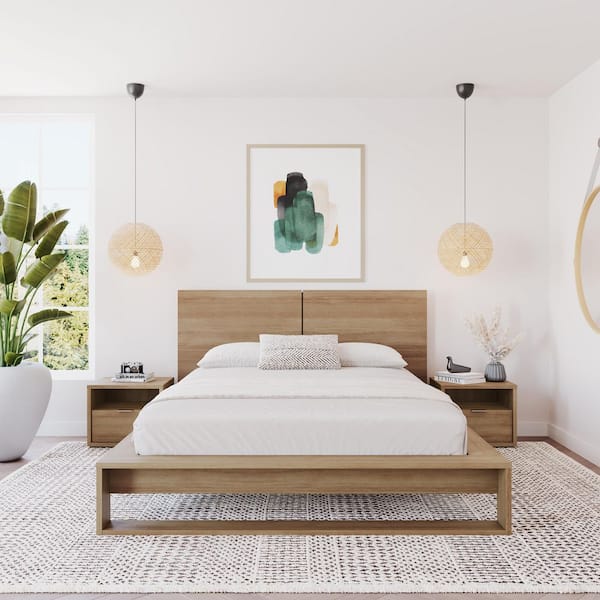 Audrey 4-Piece Brown Oak Composite Queen Size Bedroom Set