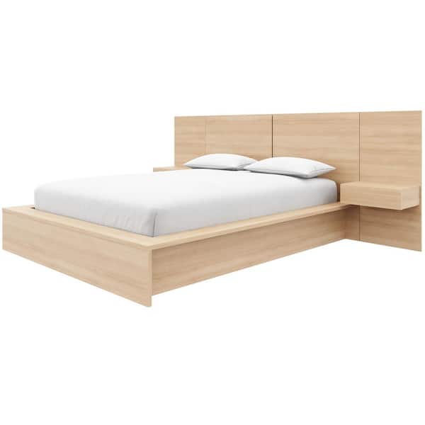 James 4-Piece Natural Blonde Oak Full Size Bedroom Set With Floating Nightstands
