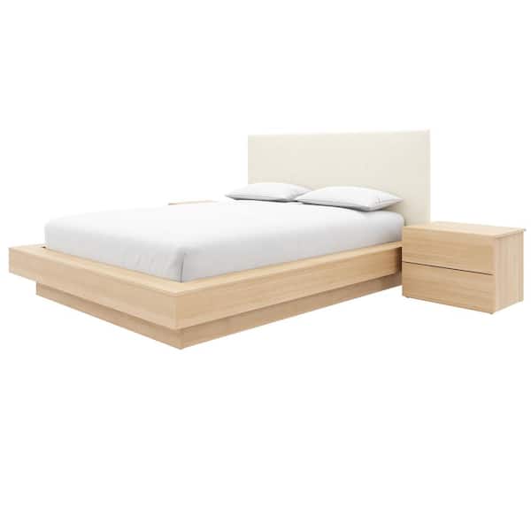Marko 4-Piece Natural Blonde Oak Queen Size Bedroom Set with Upholstered Headboard