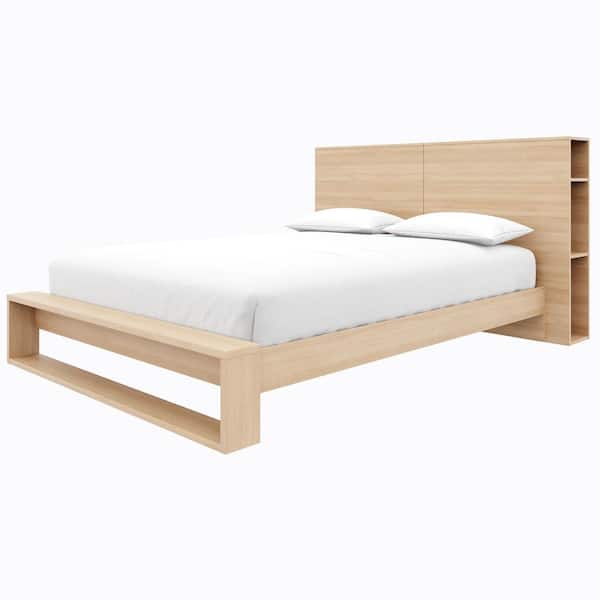 Tate Beige Engineered Wood Frame Queen Size Platform Bed with Headboard