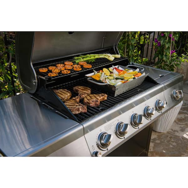 5-Burner Propane Gas Grill in Stainless Steel with Side Burner and Black Panel