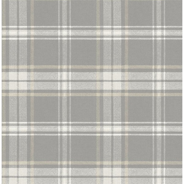 30.75 Sq. Ft. Daydream Grey Senne Hill Plaid Vinyl Peel and Stick Wallpaper Roll