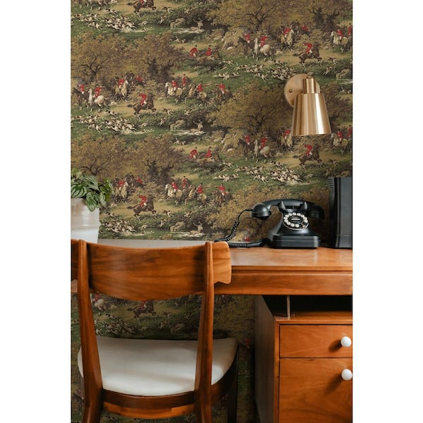 30.75 sq. ft. Chestnut & Rosemary Taunton Hunt Scene Vinyl Peel and Stick Wallpaper Roll