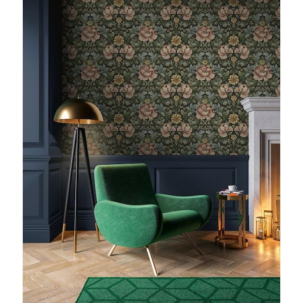 30.75 sq. ft. Clove and Rosemary Floral Garden Vinyl Peel and Stick Wallpaper Roll