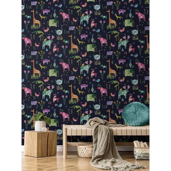30.75 sq. ft. Dark Blue Animals Vinyl Peel and Stick Wallpaper Roll