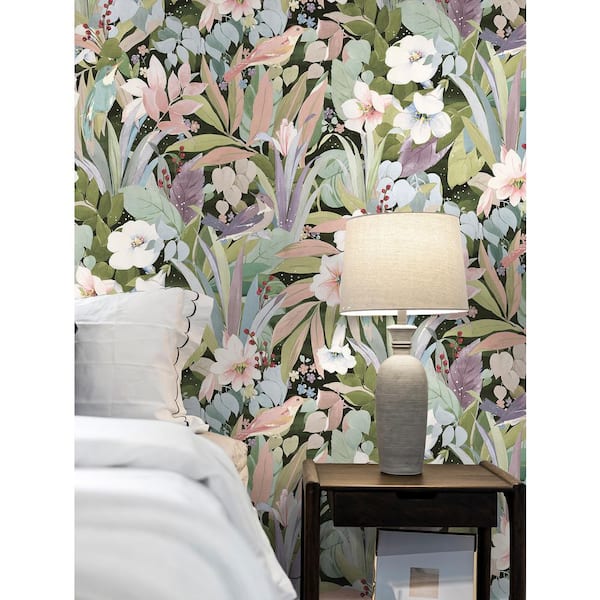 30.75 sq. ft. Forest and Petal Pink Blossoming Birds Vinyl Peel and Stick Wallpaper Roll