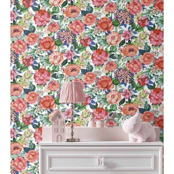 30.75 sq. ft. Spring Blossom Watercolor Floral Garden Vinyl Peel and Stick Wallpaper Roll