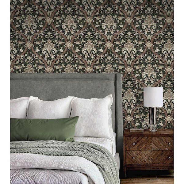 31.35 sq. ft. Ebony and Clay Acanthus Ogee Vinyl Peel and Stick Wallpaper Roll