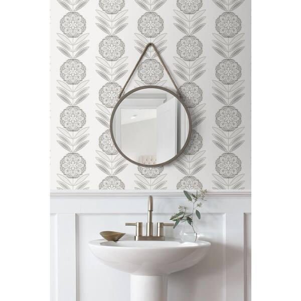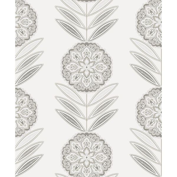 31.35 sq. ft. Morning Fog Folk Flowers Vinyl Peel and Stick Wallpaper Roll