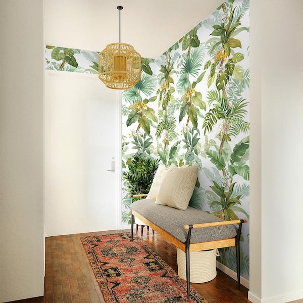 40.5 sq. ft. Greenery Tropical Leaf Trail Vinyl Peel and Stick Wall Mural (54 in. W x 108 in. H)