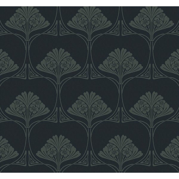 40.5 sq. ft. Midnight Blue and Juniper Deco Floral Vinyl Peel and Stick Wallpaper Roll