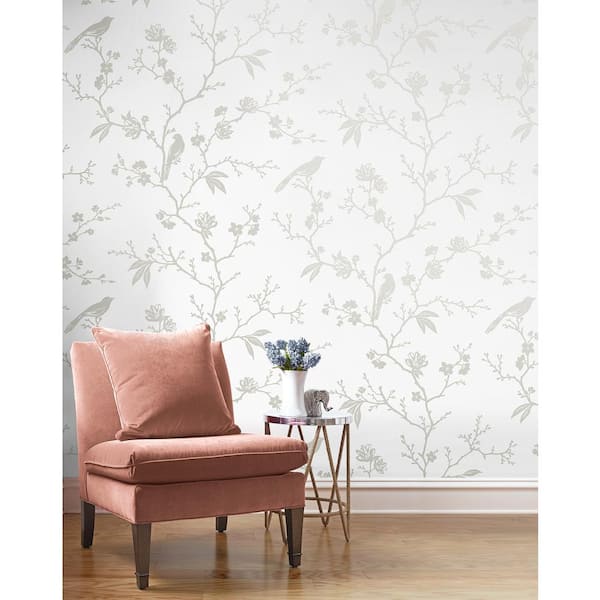 40.5 sq. ft. Nickel Songbird Chinoiserie Vinyl Peel and Stick Wallpaper Roll
