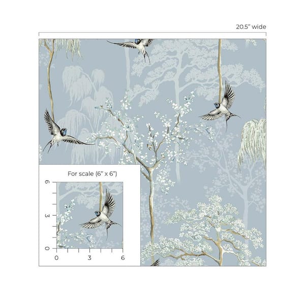Arthouse Light Blue Bird Garden Vinyl Peel and Stick Wallpaper Roll 30.75 sq. ft.