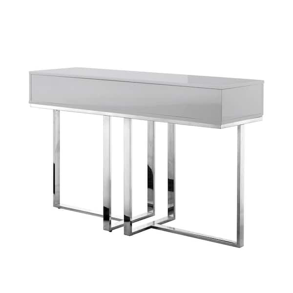 Maui 48 in. Light Gray/Chrome Rectangle Wood Console Table with 2-Drawers