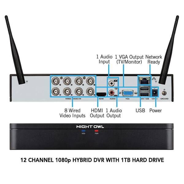 12-Channel 1080p HD Hybrid 1 TB DVR Player with Expandable Wired + Wireless Security System