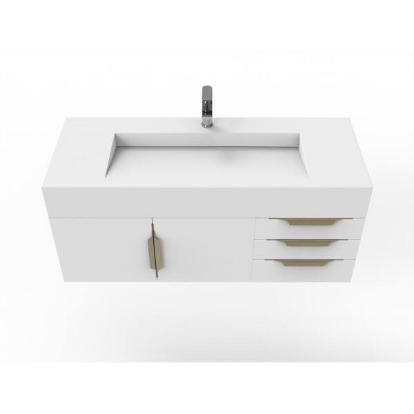 Nile 48 in. W x 19 in. D x 20 in. H Bath Vanity in Matte White with Gold Trim and White Solid Surface Top