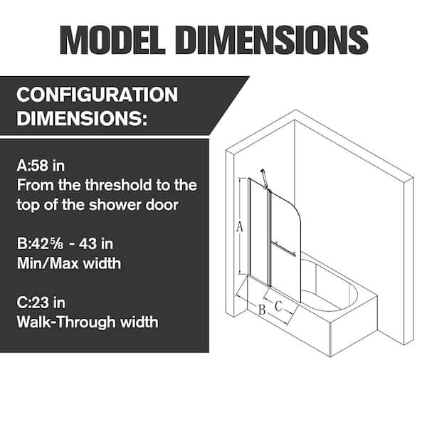 43 in. W x 58 in. H Pivot Tub Door in Matte Black with Clear Glass, Frameless Folding Shower Doors