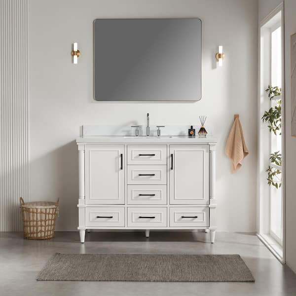 48 in. Soild Wood Freestanding White Bath Vanity with Carrara Marble Top Assembled