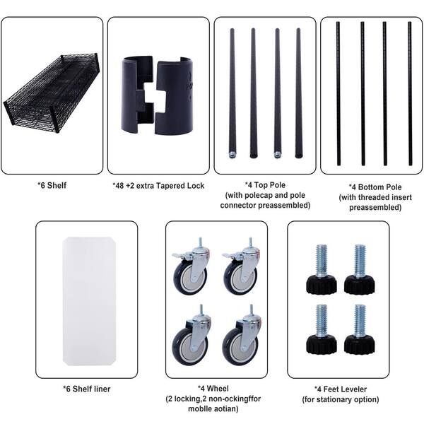 84 in. H x 48 in. L x 20 in. D 6-Shelf Black Metal Pantry Organizer Wheels Shelf Liners, Storage Wire Rack