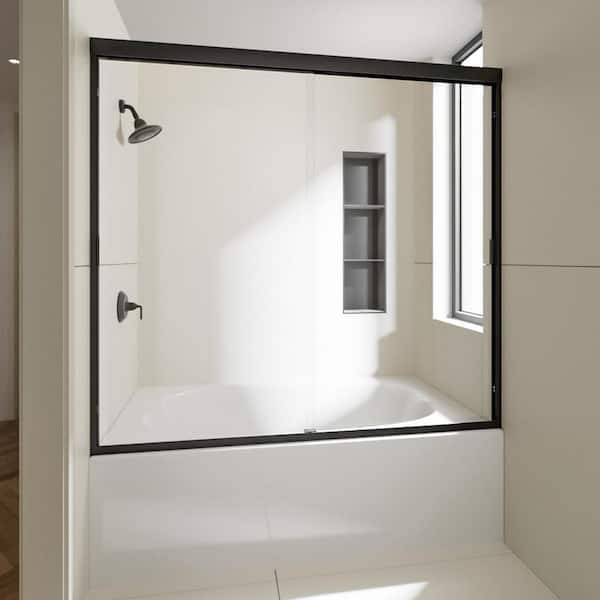 Apex 60 in. W x 56 in. H Sliding Semi-Frameless Tub Door in Matte Black Finish with Clear Glass