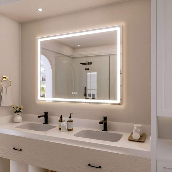 Rina 48 in. W x 36 in. H Rectangular Frameless LED Wall Bathroom Vanity Mirror with Sleek Silver Finish