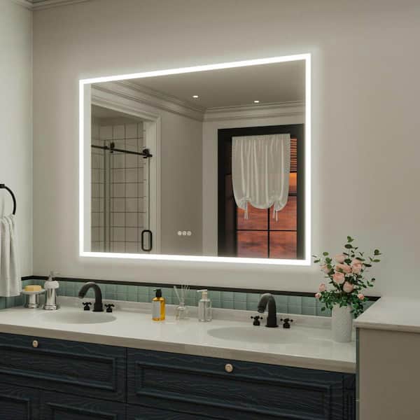 Solva 48 in. W x 36 in. H Rectangular Frameless LED Wall Bathroom Vanity Mirror with Sleek Silver Finish