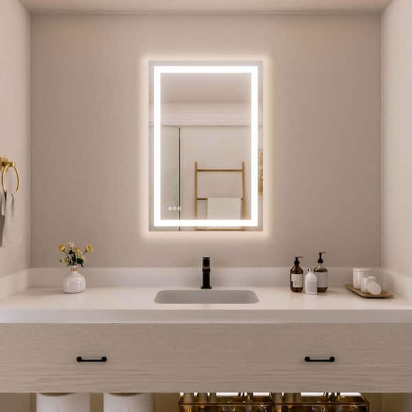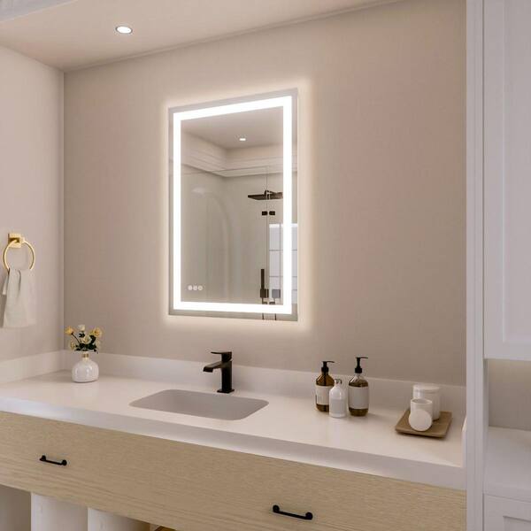 Ziva 24 in. W x 36 in. H Rectangular Frameless LED Wall Bathroom Vanity Mirror with Sleek Silver Finish