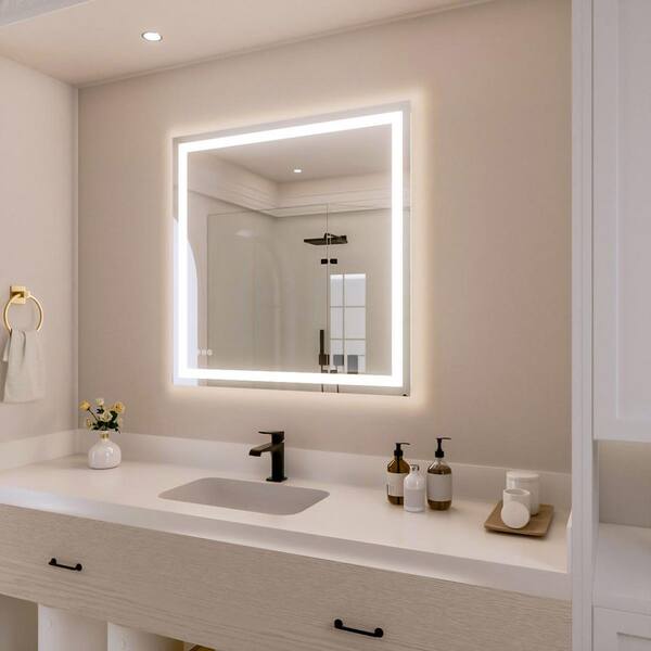 Ziva 36 in. W x 36 in. H Rectangular Frameless LED Wall Bathroom Vanity Mirror with Sleek Silver Finish