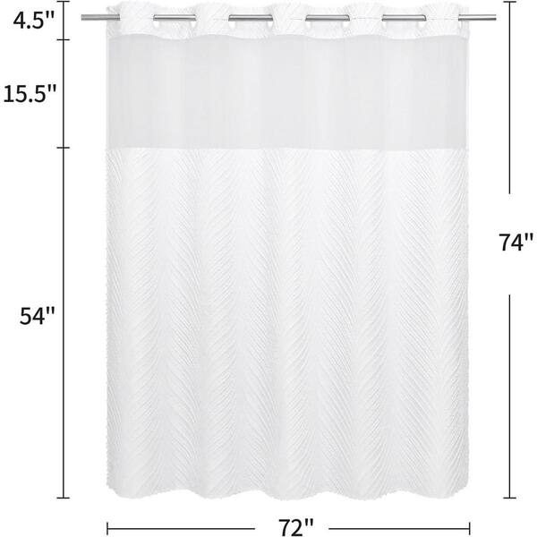 No Hook Boho Tufted Leaves Shower Curtain and Snap Liner Set with See Through Top Window 72x74 White Polyester