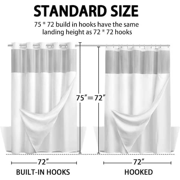 No Hook Shower Curtain Set 72 x 75 with Snap In Fabric Liner White Waffle Design Bathroom Curtain