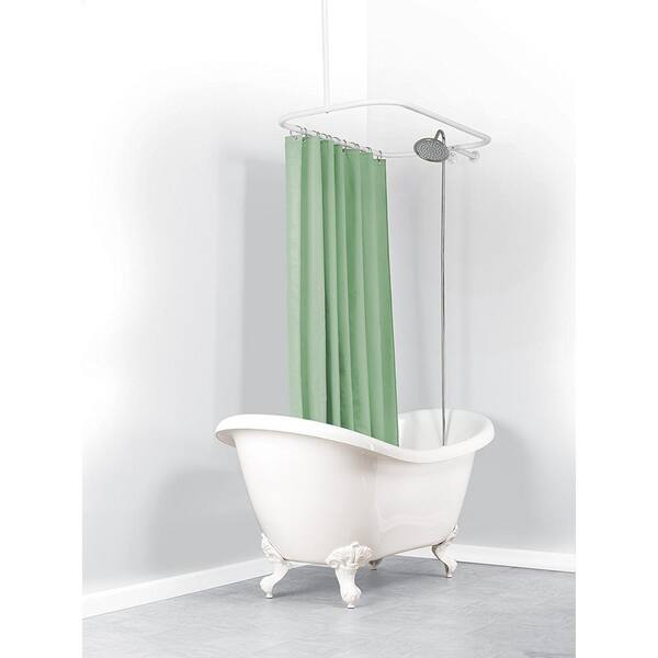 No Rust 58 in. Aluminum Oval Rectangular Hoop Shower Rod for Claw Foot and Standalone Bathtubs in White