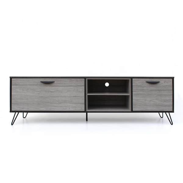 71 in. Grey Oak Wood TV Stand Fits TVs Up to 68 in. with Storage Doors