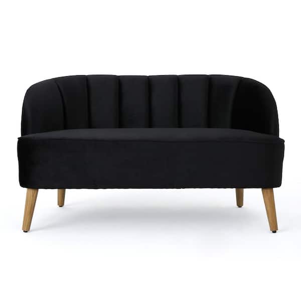Amaia 50 in. Black Solid Velvet 3-Seater Tuxedo Sofa