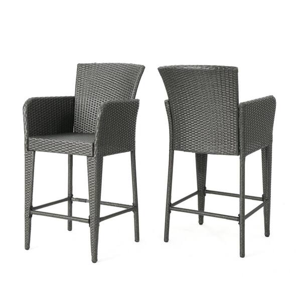 Anaya Gray Faux Rattan Outdoor Bar Stools (2-Pack)