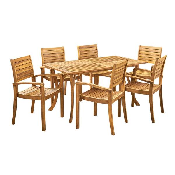 Anchor Teak Brown 7-Piece Wood Outdoor Patio Dining Set