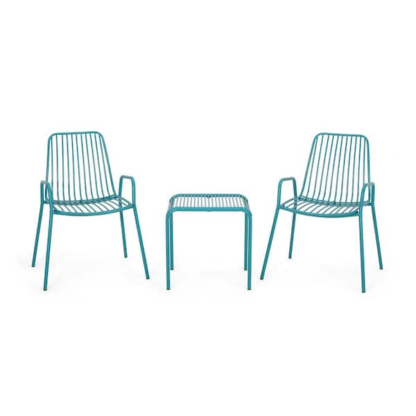 Annette Matte Teal 3-Piece Metal Outdoor Patio Conversation Seating Set