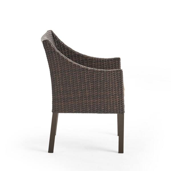 Antibes Multi-Brown Armed Faux Rattan Outdoor Patio Dining Chair with Beige Cushions (4-Pack)