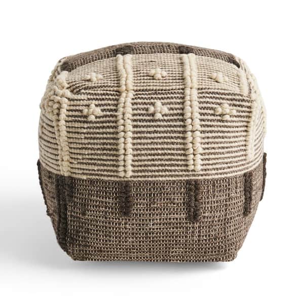Arlene Grey and Ivory Cube Ottoman Pouf