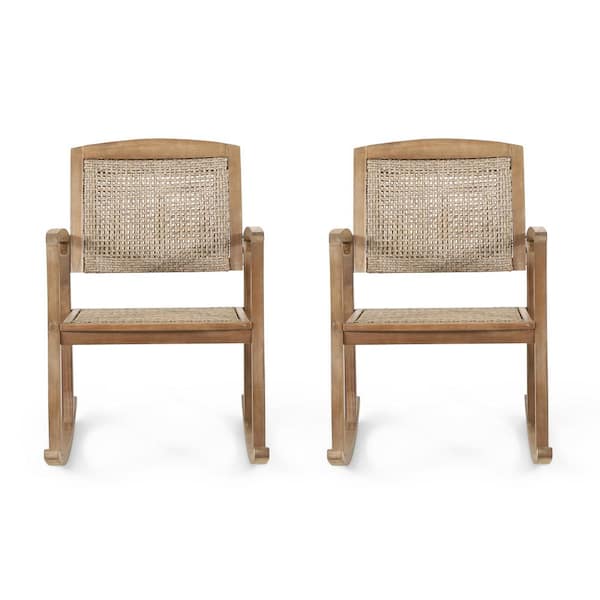 Arnton Light Brown Wood and Wicker Outdoor Patio Rocking Chair (2-Pack)