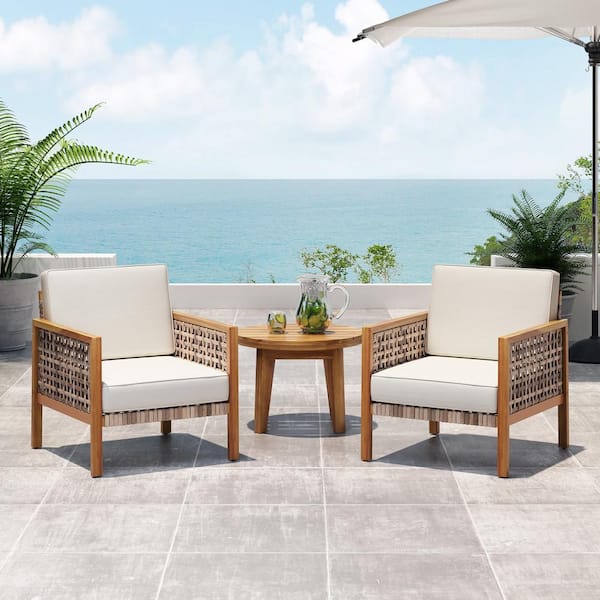 • Made with teak finish acacia wood with multibrown rattan seat.