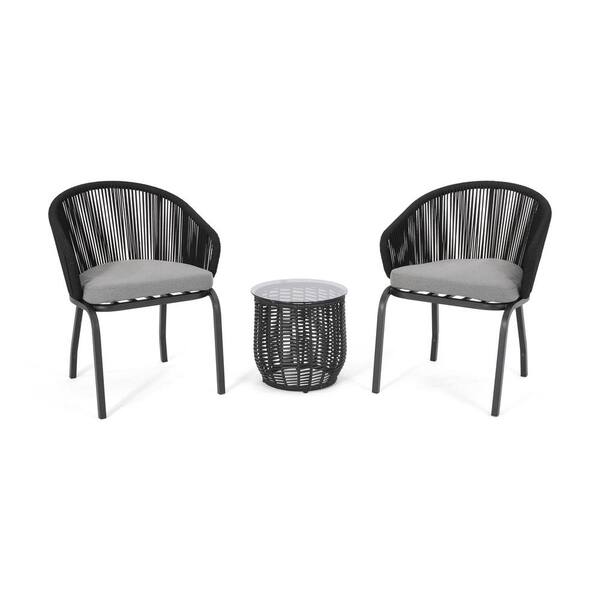 Boynton Black 3-Piece Metal Outdoor Patio Conversation Seating Set with Grey Cushions