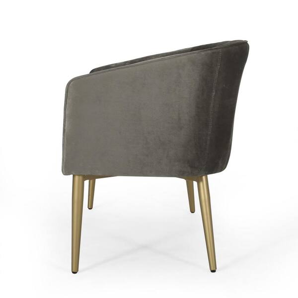 • Upholstered with grey finished velvet with gold legs.