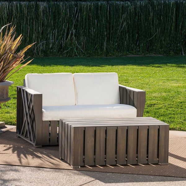 Cadence Grey 2-Piece Wood Outdoor Patio Conversation Set with Cream Cushions