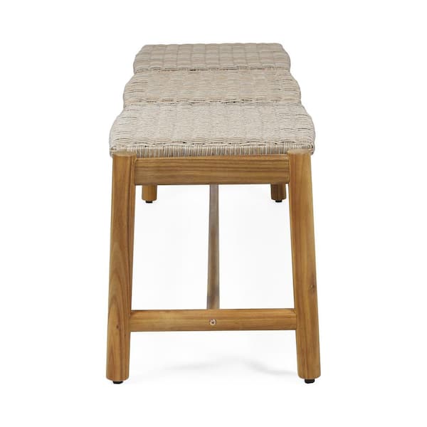 Cambria 61.5 in. 3-Person Teak Brown Wood Outdoor Patio Bench with Light Grey Wicker Seat