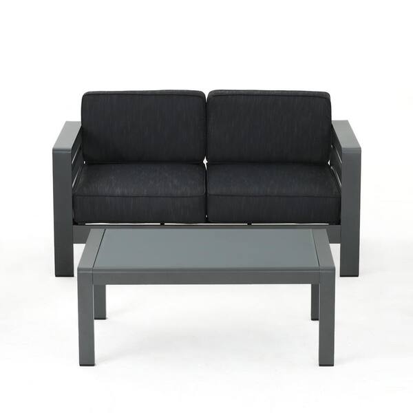 Cape Coral Grey 2-Piece Aluminum Patio Conversation Set with Dark Gray Cushions