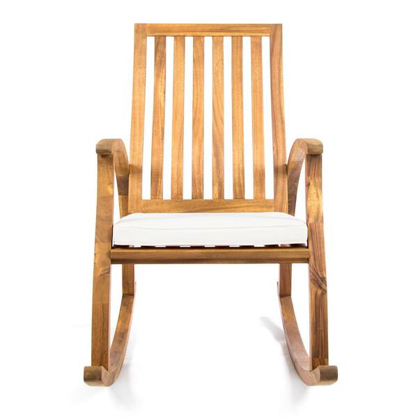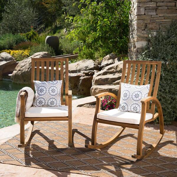 Cayo Natural Stained Wood Outdoor Patio Rocking Chair with Cream Cushions (2-Pack)