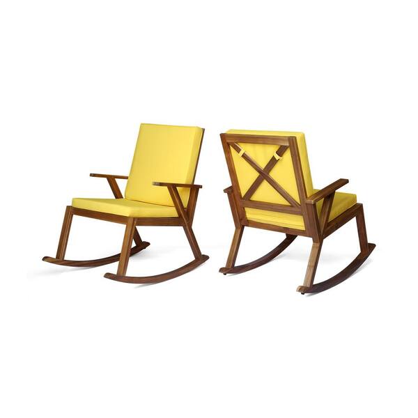 Champlain Teak Brown Wood Outdoor Patio Rocking Chairs with Yellow Cushion (2-Pack)