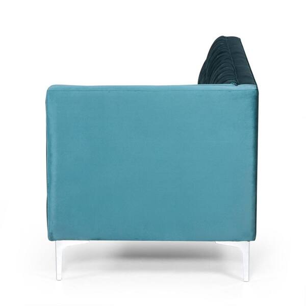 Conneaut 114 in. Square Arm 2-Piece Blue Polyester L-Shape Chaise Sectional in Silver