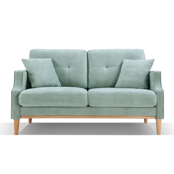 Crassa 56.7 in. Tufted Sofa Loveseat, Spillproof Fabric, with USB Charger, Baby Blue
