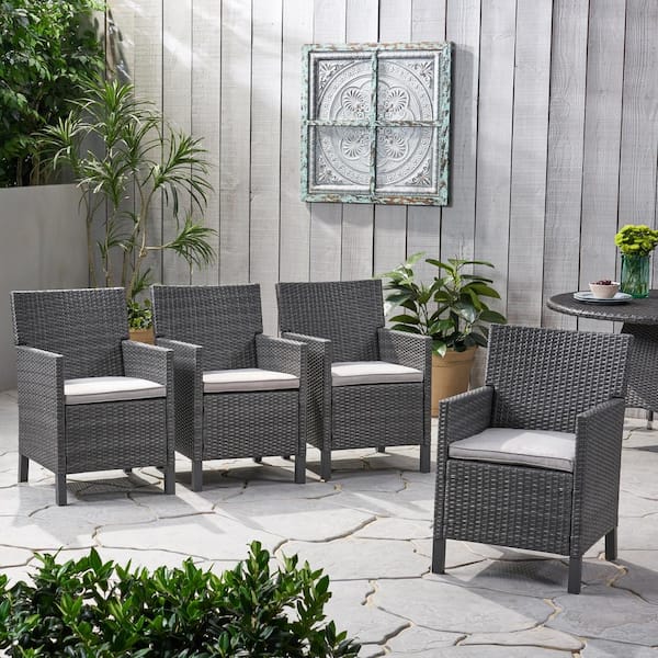 Cypress Grey Removable Cushions Faux Rattan Outdoor Patio Dining Chair with Light Grey Cushion (4-Pack)